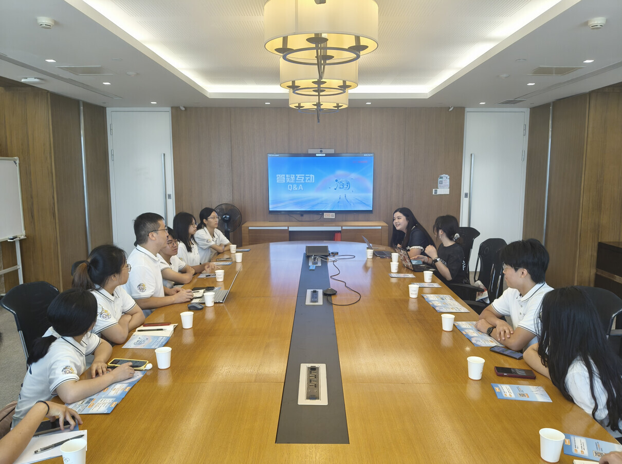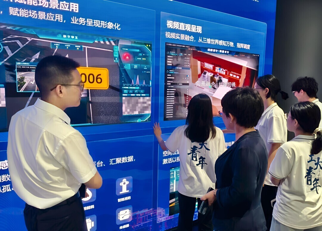 在海康威视,实践队员系统考察了企业在视频监控、智能感知、人工智能、大数据模型等领域的技术创新成果,深入了解了智能物联技术在智慧城市、工业互联网、网络安全等领域的创新应用,并就技术研发、产业转化、行业发展等议题与企业技术人员进行了深入交流。