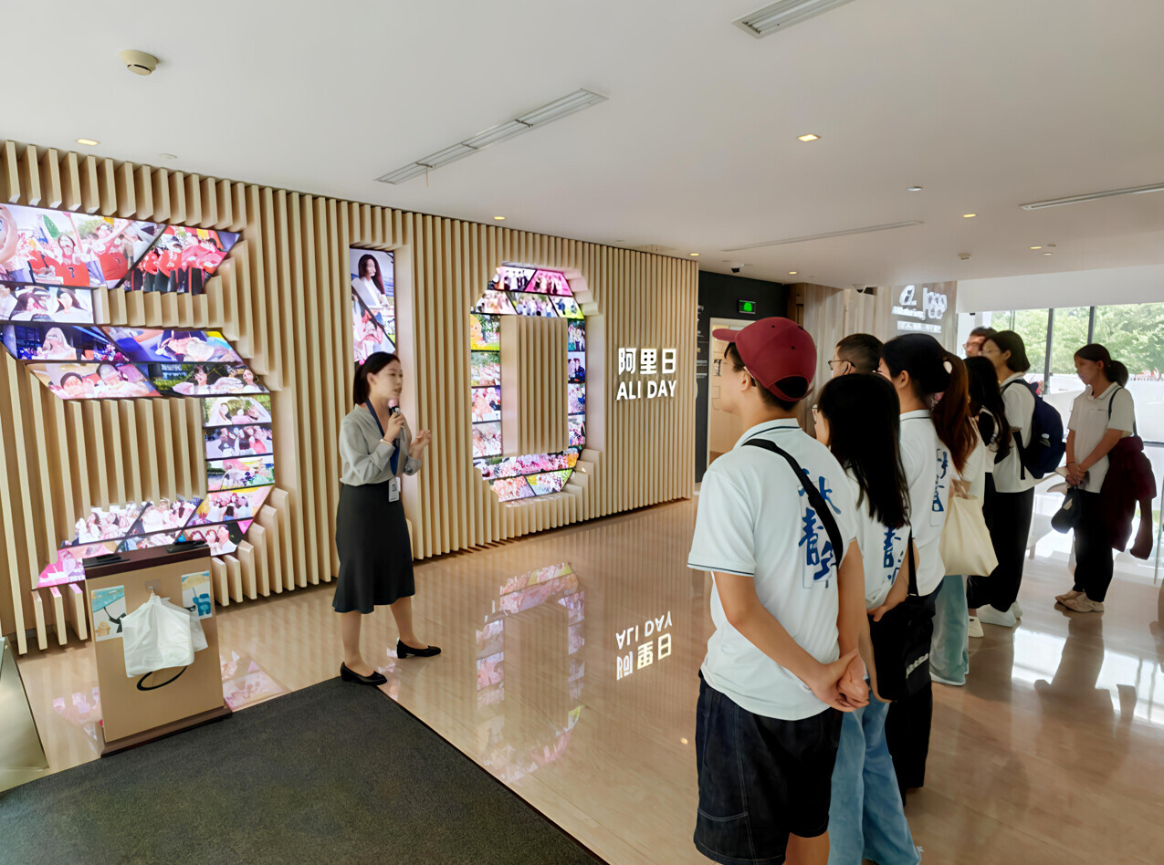 在淘天集团,队员们了解了淘天集团作为阿里巴巴核心业务板块的战略定位,以及在电商平台技术创新、AI应用研发等领域取得的突破性进展。校招组代表刘怀宇特别分享了淘天在AI大模型与电商业务融合方面的创新实践。这些前沿技术应用的介绍,不仅拓宽了同学们的专业视野,更让大家对AI技术广阔的发展前景有了更清晰的认识。